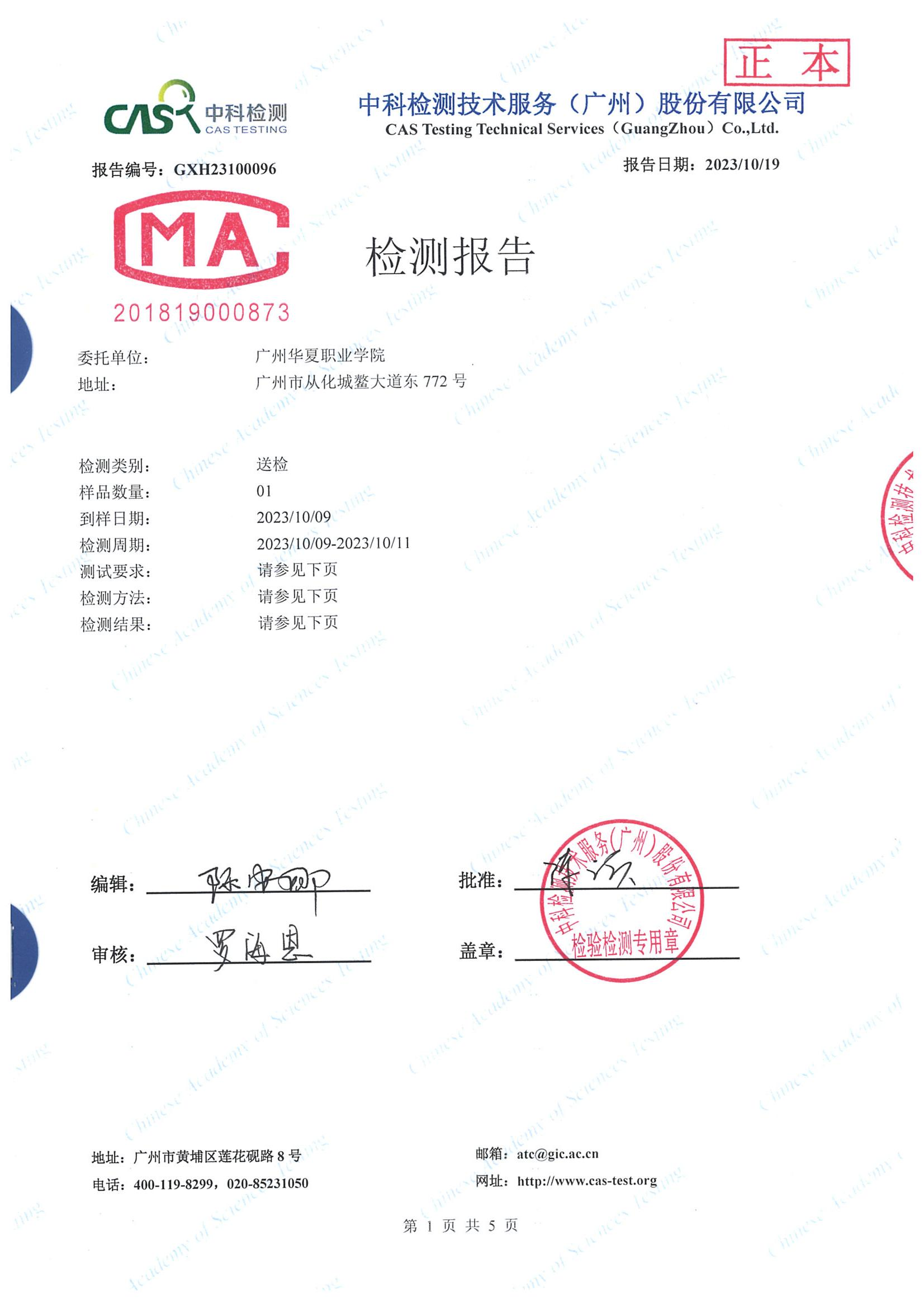 检验机构:广州中科检测技术服务有限公司